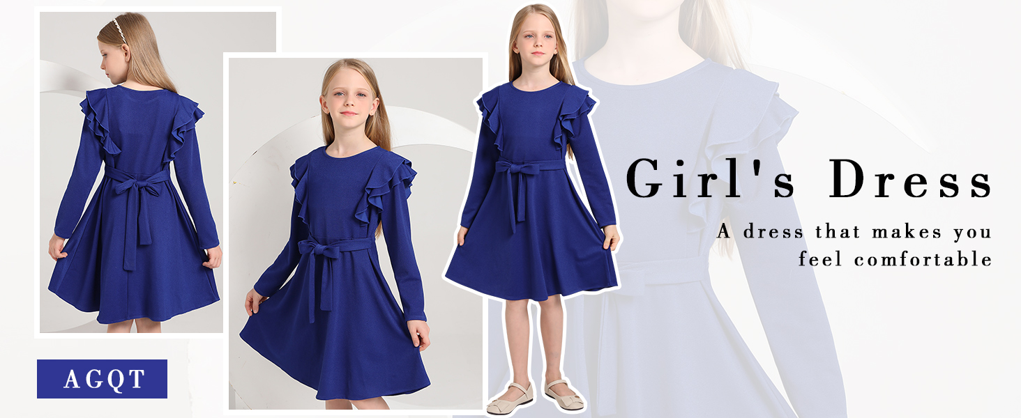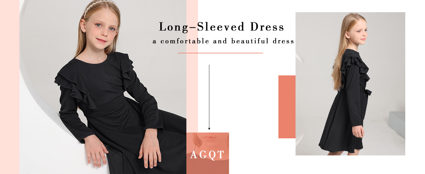 Se el primero en opinar sobre “AGQT Vestido Elegante de Manga Larga para niña, Disfraz de Halloween, Vestido Informal de otoño e Invierno, Cuello Redondo con cinturón, Talla 2-14 años”
