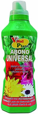 Vital Plant Universal líquido Fertilizante es una formulación ideal para todo tipo de plantas ornamentales tanto en interiores como en exteriores. Favorece el desarrollo de las plantas. Los fosfatos preciosos fortalecen el poder de floración, el potasio da a las plantas salud y fuerza, quelato de hierro y óxido de magnesio proporcionan un verde rico y contrarrestan el amarillamiento de las hojas.